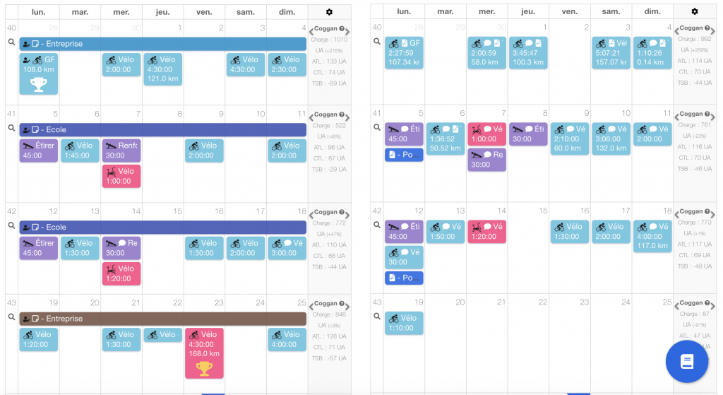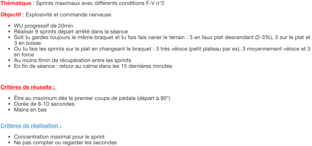 Les objectifs de saison sont également marqués dans le temps, comme ici les championnats de France u23, ce qui permet d’organiser les blocs d’entrainement de manière adaptée en vue de ces événements.